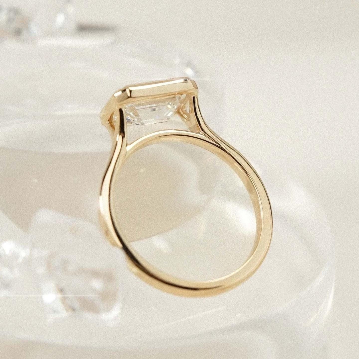1 Carat Radiant Horizontal Half Bezel Ring | Lab Grown Diamond IGI Certified D-E VS1-VVS2 | 14K / 18K Solid Gold | 1 to 3 Carat
