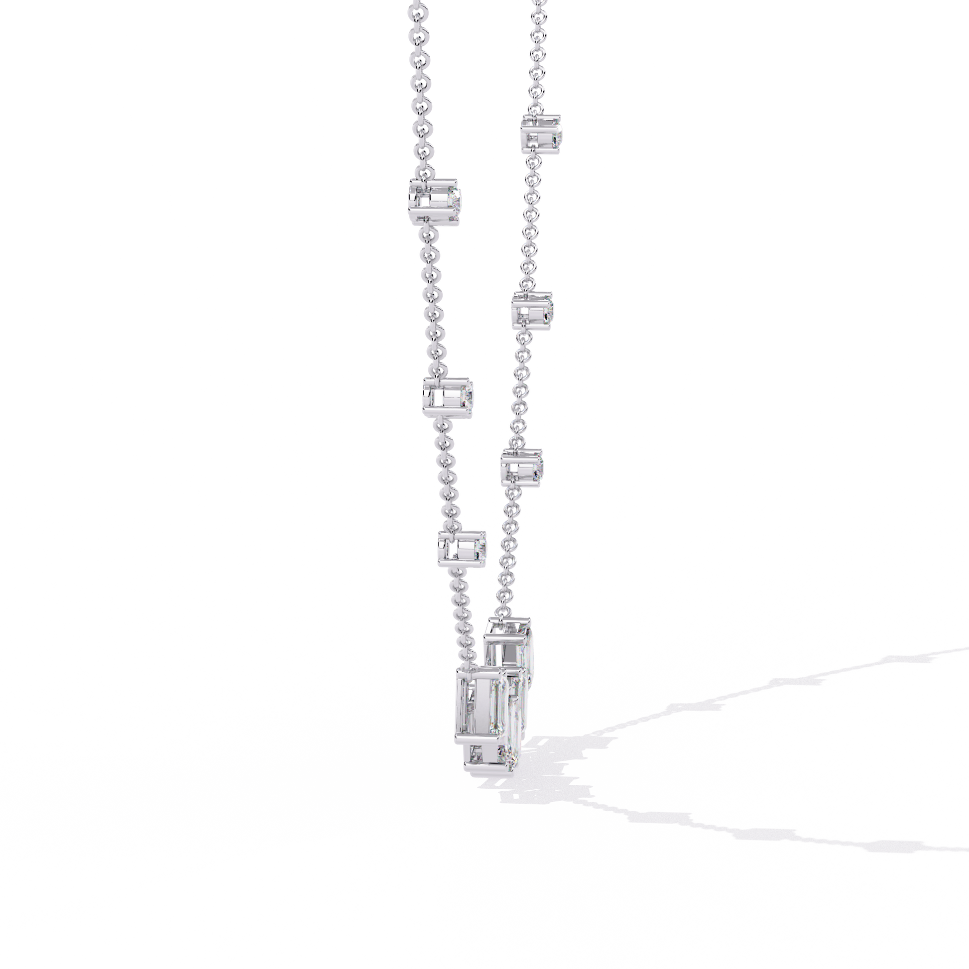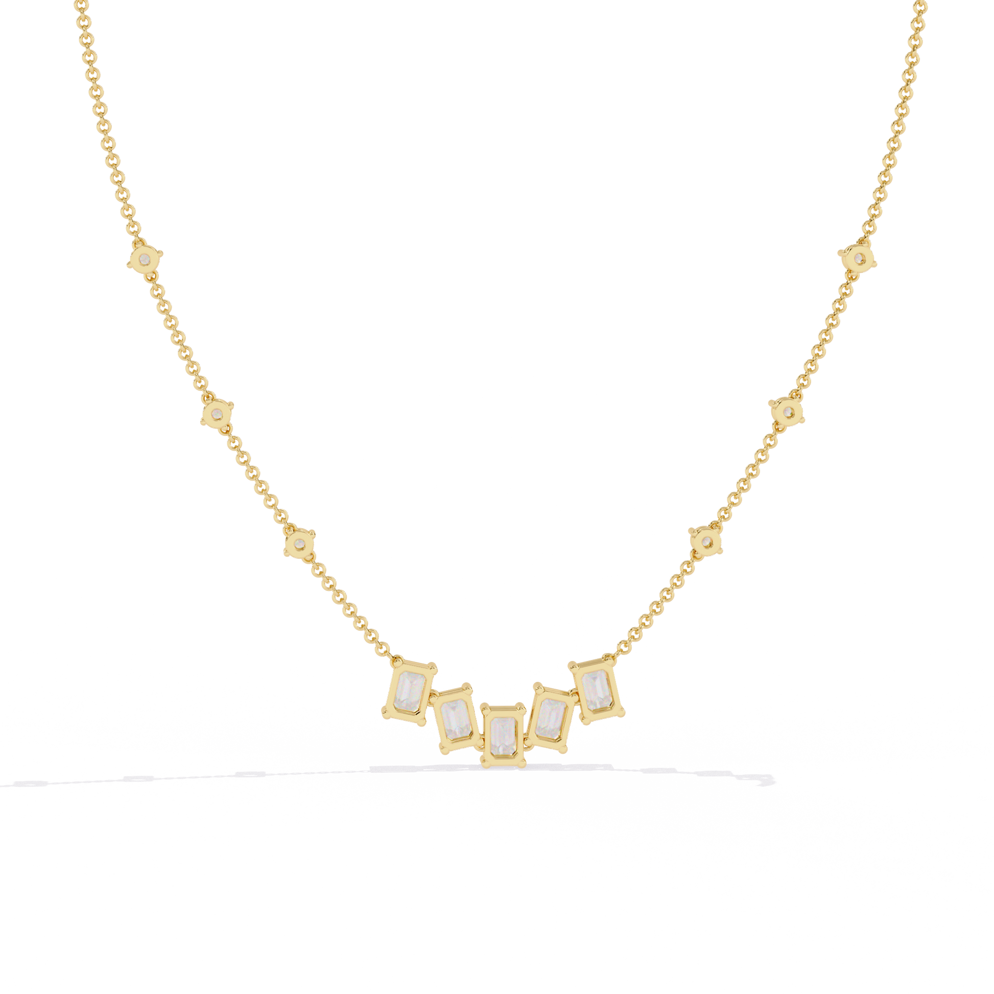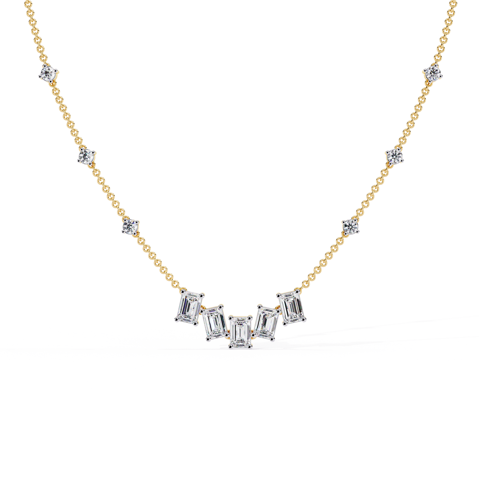 Cedar is a stunning lab-grown diamond necklace that radiates elegance and sophistication. Featuring 5 emerald and 6 round diamonds, this exquisite piece boasts a total diamond weight of 3.27 carats, offering brilliant sparkle with every movement. Crafted with precision and care, the perfect symbol of timeless beauty and luxury, designed for the modern woman who values both style and sustainability. Elevate your collection with this captivating masterpiece.