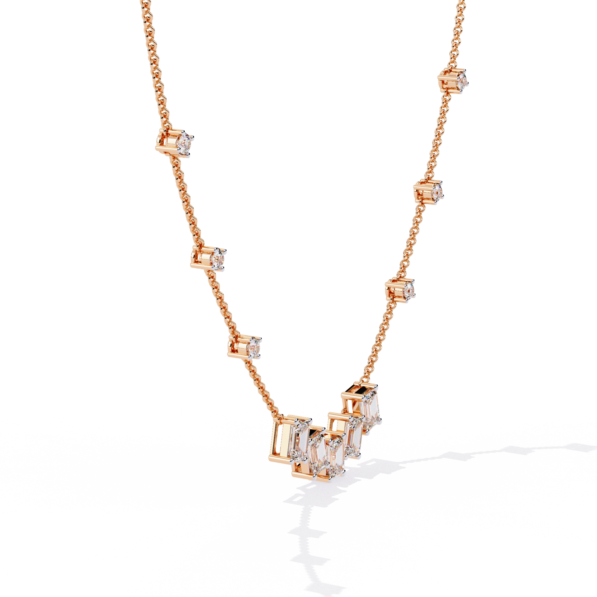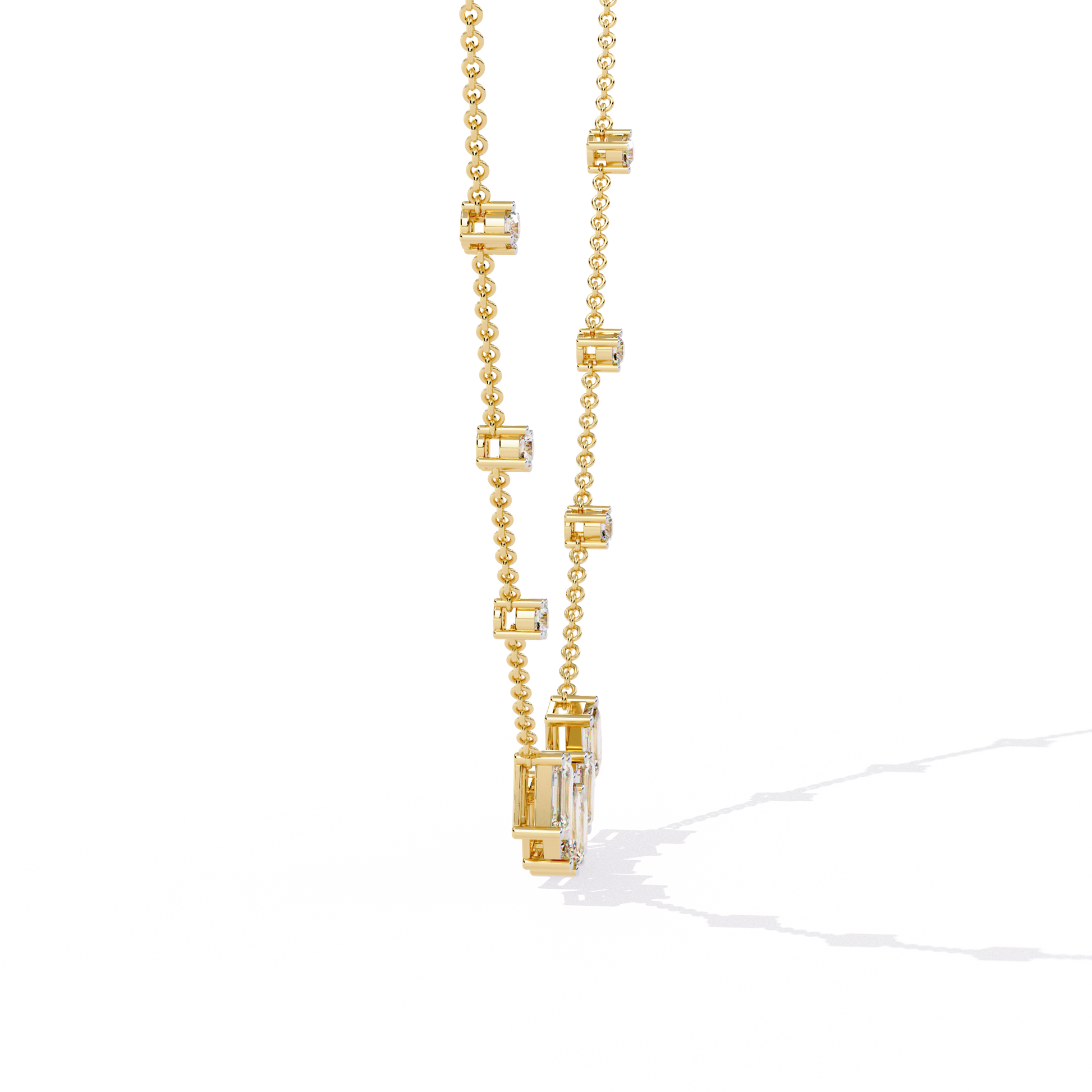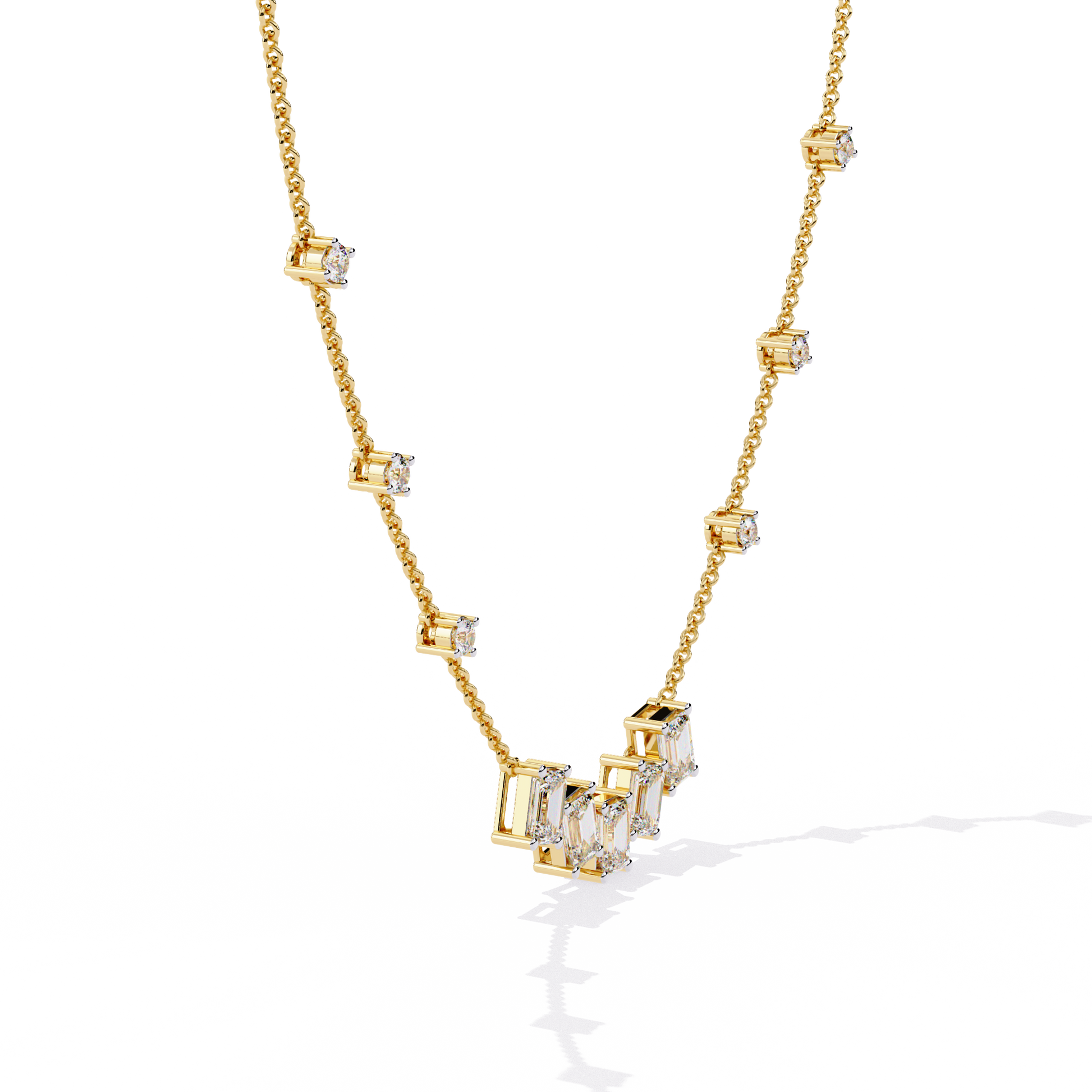 Cedar is a stunning lab-grown diamond necklace that radiates elegance and sophistication. Featuring 5 emerald and 6 round diamonds, this exquisite piece boasts a total diamond weight of 3.27 carats, offering brilliant sparkle with every movement. Crafted with precision and care, the perfect symbol of timeless beauty and luxury, designed for the modern woman who values both style and sustainability. Elevate your collection with this captivating masterpiece.