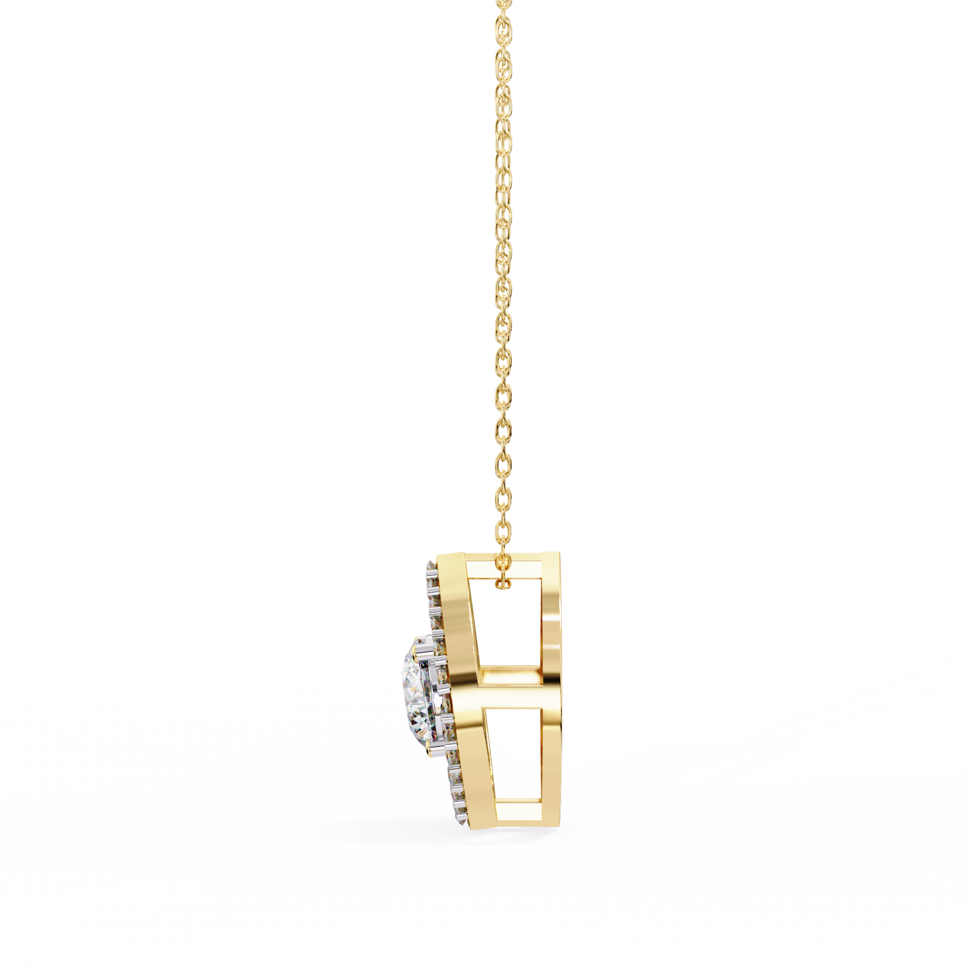 This elegantly crafted pendant features a 1.04 ct lab-grown diamond, set in a sleek gold frame. Its design combines timeless sophistication with modern charm, creating a piece that radiates both luxury and contemporary elegance. Perfect for any occasion, this pendant offers a refined and striking addition to your jewelry collection, showcasing the perfect balance of classic beauty and modern craftsmanship.