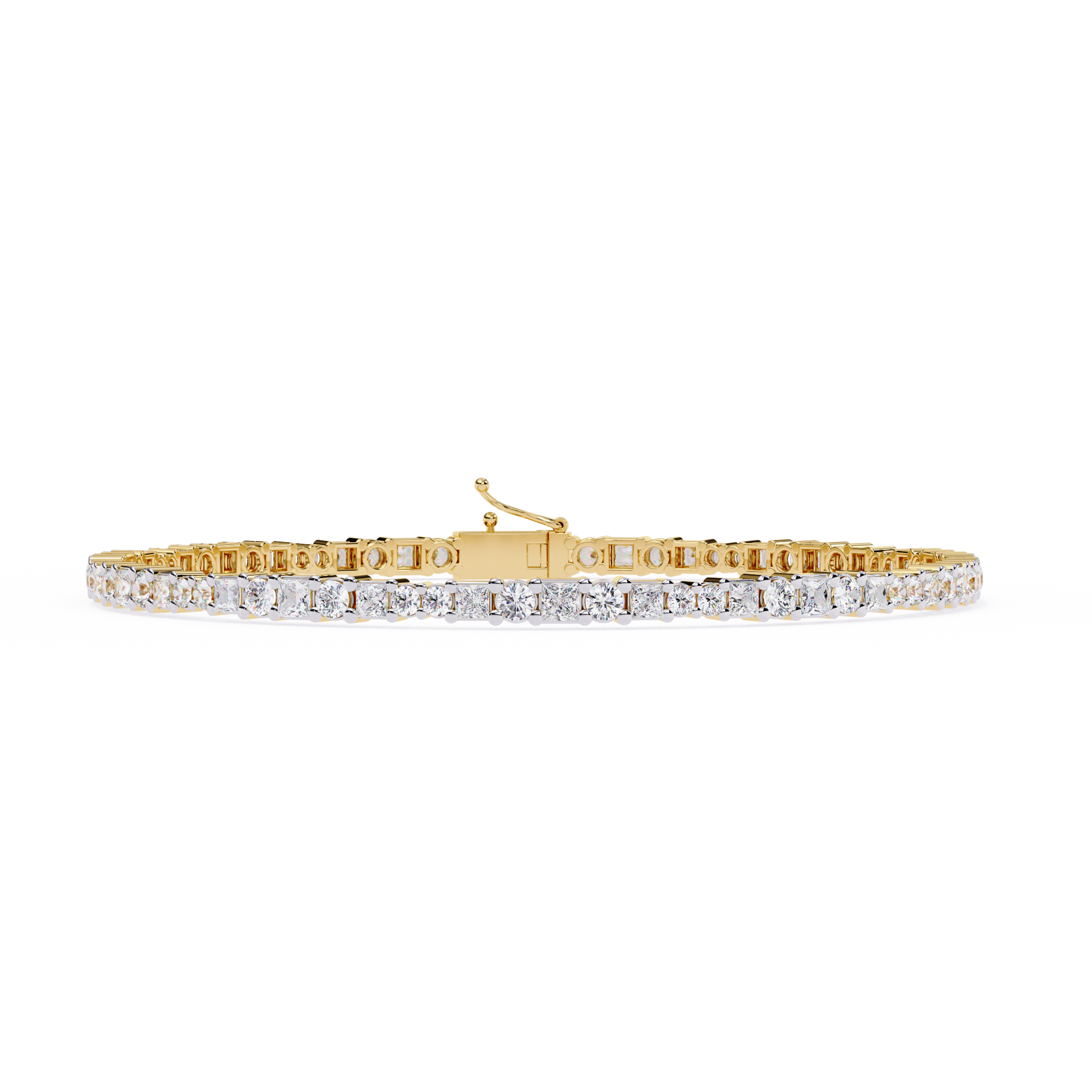 The Glimmerine bracelet is a stunning display of elegance and brilliance. Crafted with 33 Round shaped lab-grown diamonds, this exquisite piece offers a total diamond weight of 2.05 carat. Each diamond is carefully set to create a radiant and timeless design, perfect for any occasion. The lab-grown diamonds provide an eco-friendly and ethical alternative while maintaining the same beauty and sparkle as mined diamonds. A true treasure for your jewelry collection.
