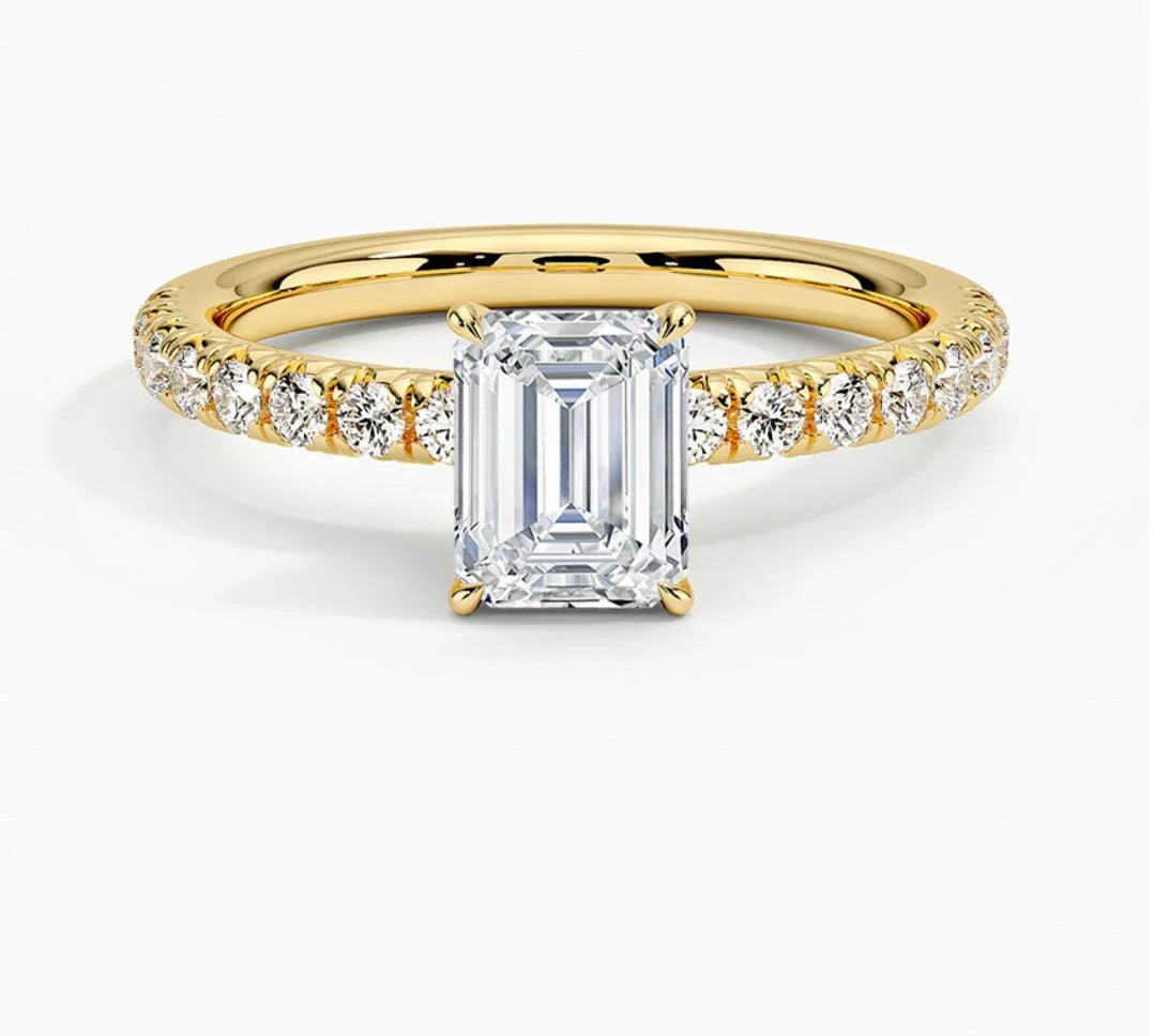 There is no need to explain why Emerald cut diamond Ring is instant hit. Beautiful diamond is set in 14K or 18K gold, depending on your preference, in these exquisite and timeless diamond ring with some added love.