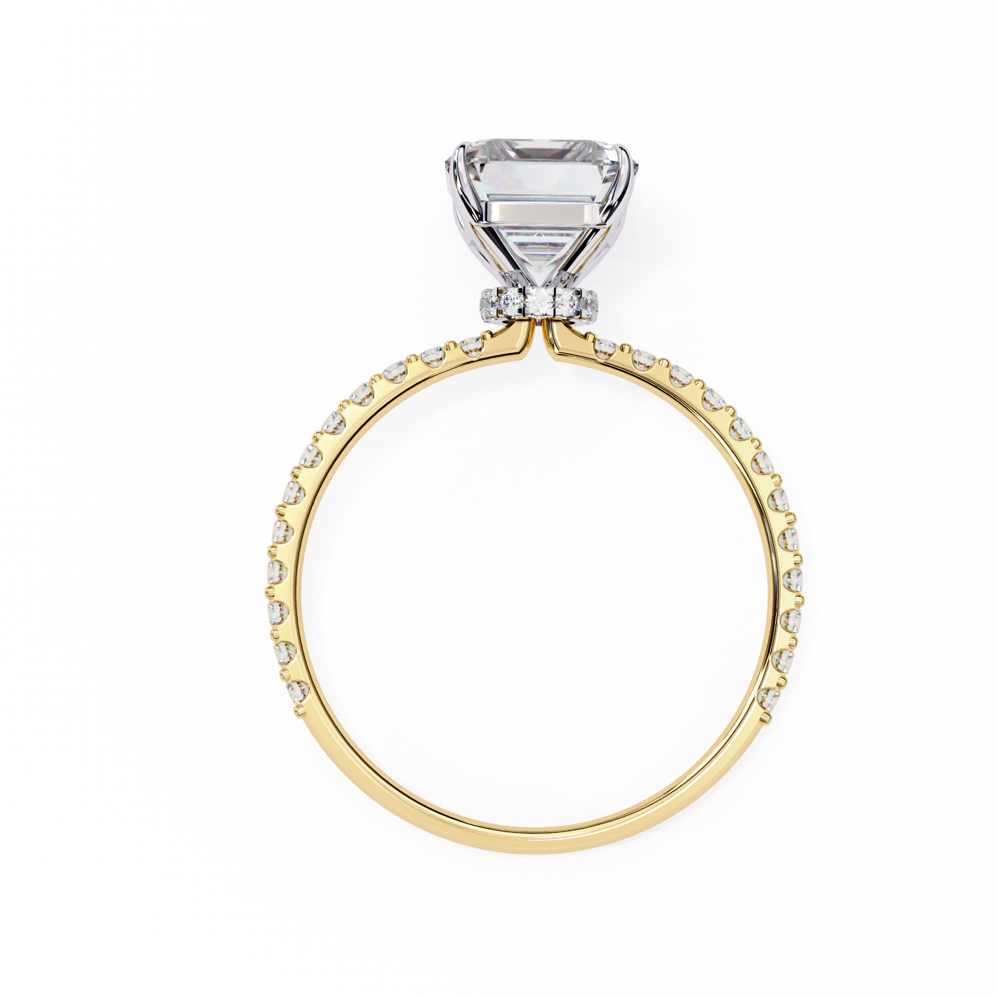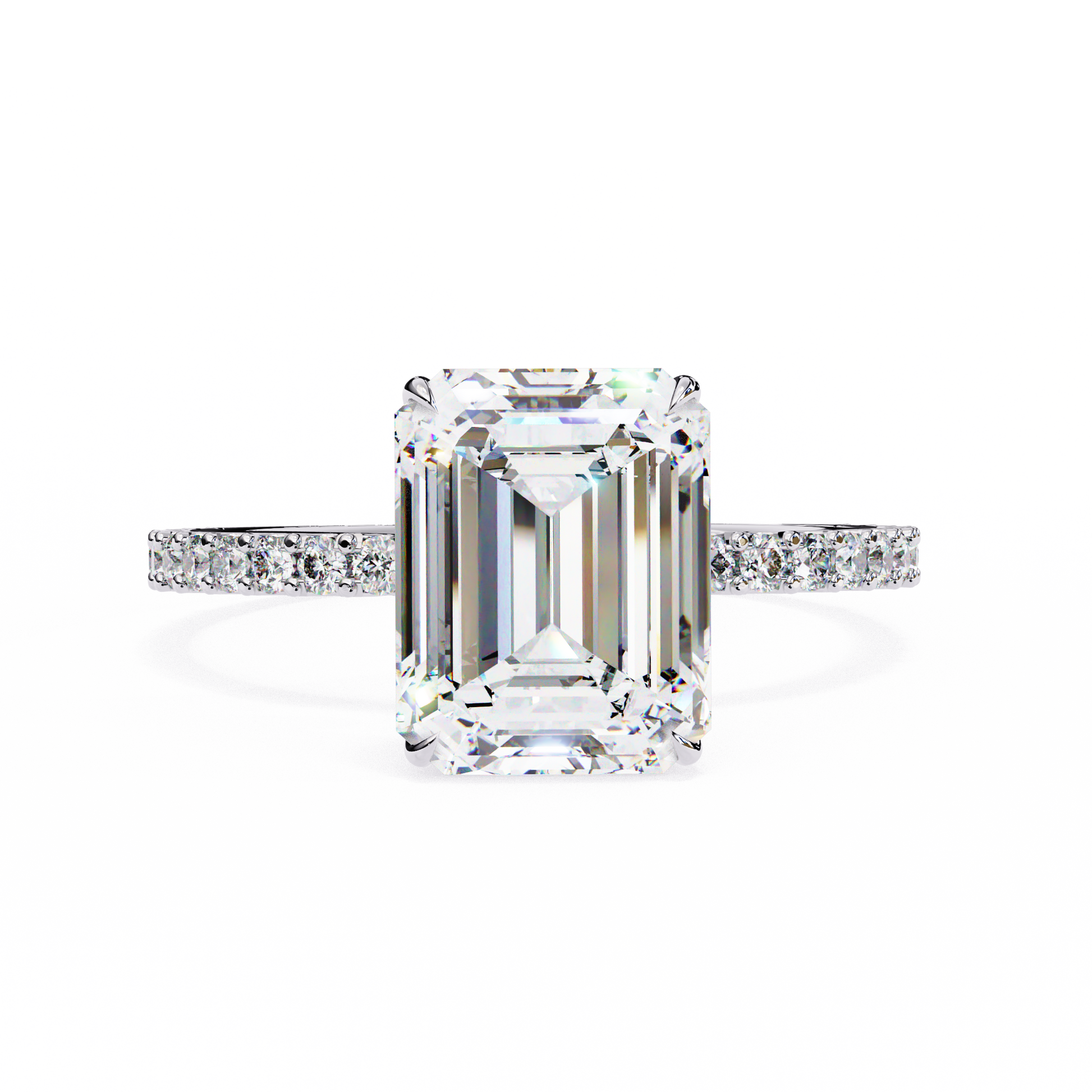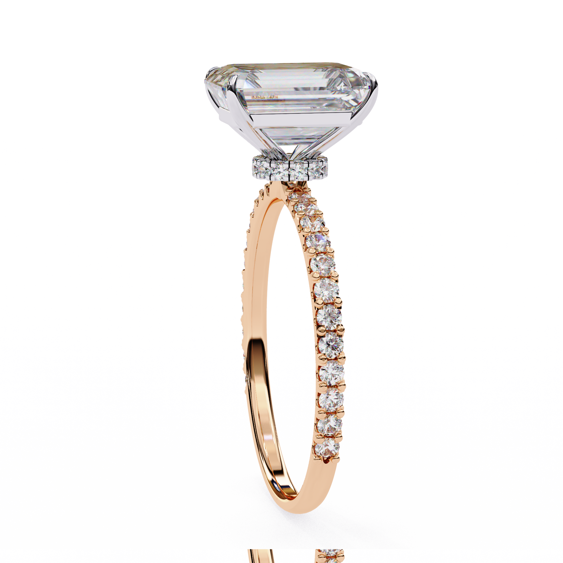 This exquisite ring, featuring a dazzling 1.54-carat emerald-cut diamond as its centerpiece and a delicate diamond-encrusted band, radiates timeless elegance and refined luxury, capturing light with every graceful facet.