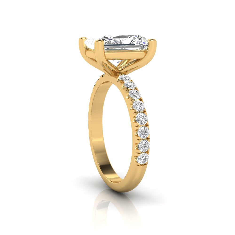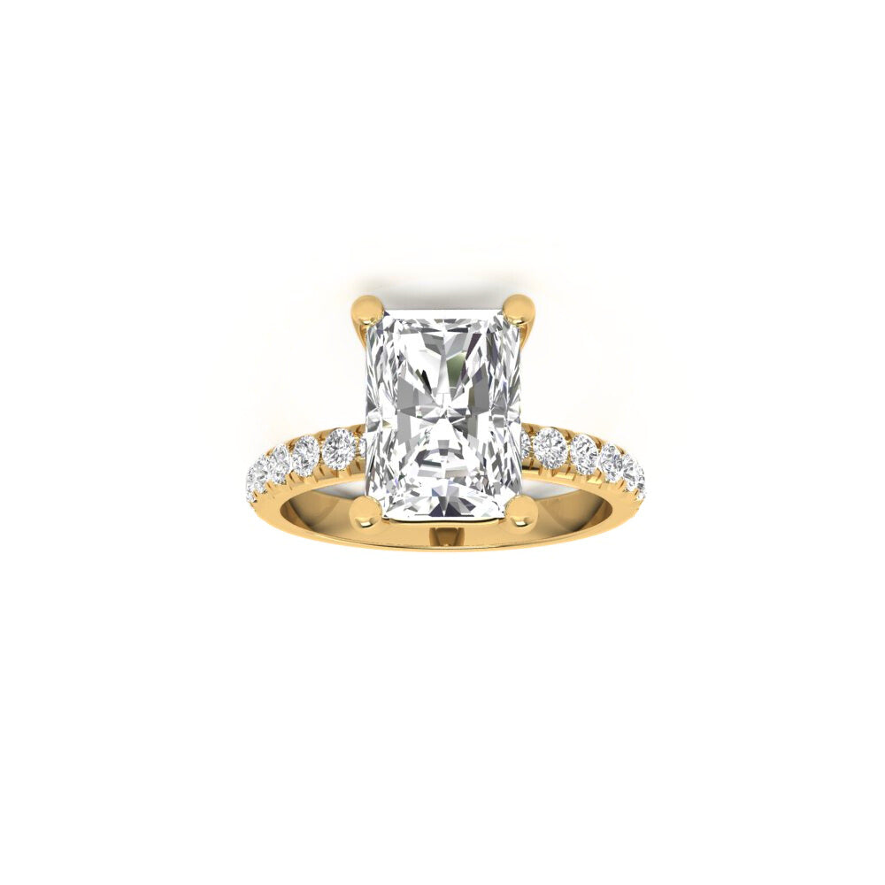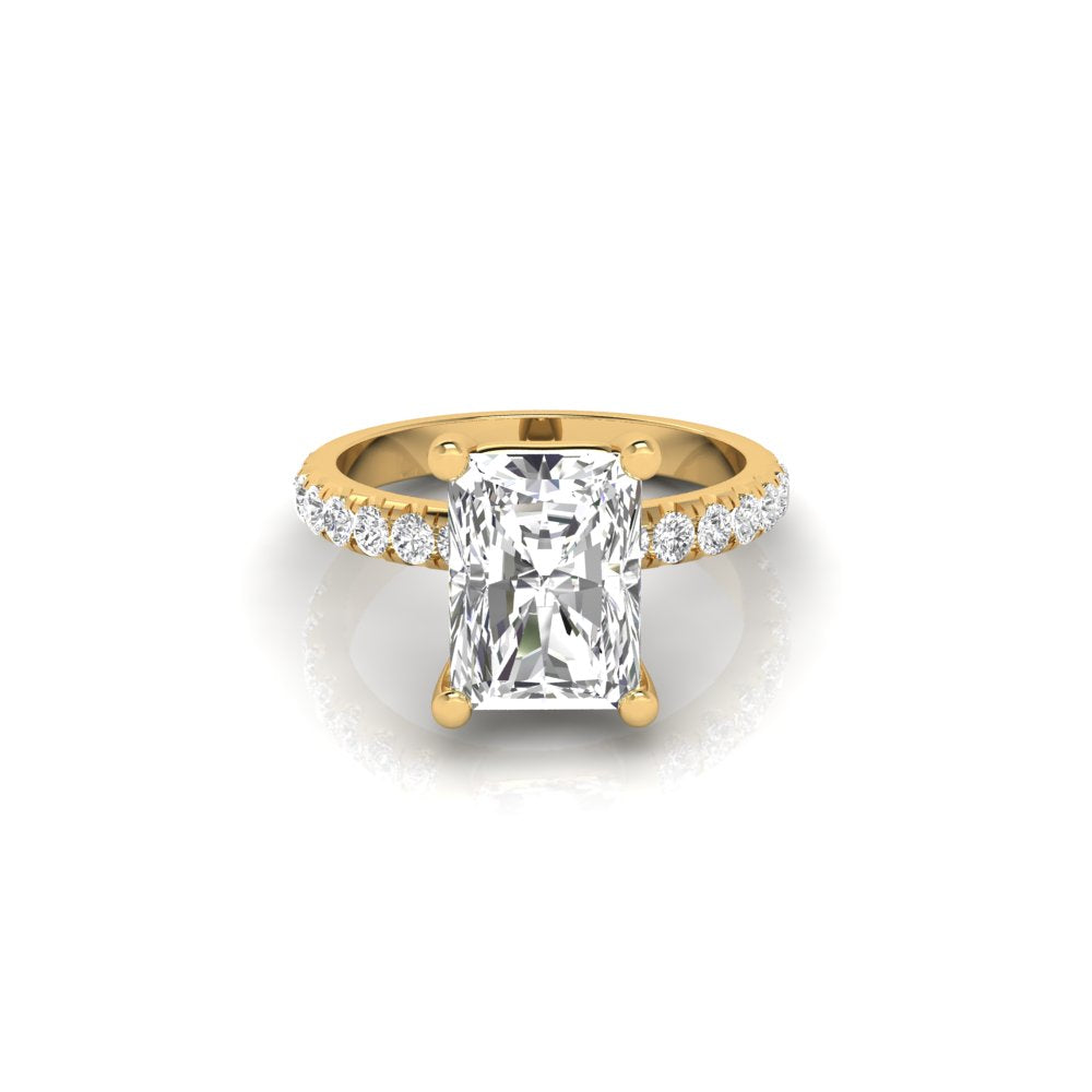 This stunning ring showcases a brilliant 1.5-carat diamond at its heart, surrounded by a band adorned with delicate diamonds. The interplay of light on its sparkling facets creates a mesmerizing effect, exuding sophistication and luxury. With its timeless design and exquisite craftsmanship, this ring embodies elegance, making it the perfect symbol of enduring beauty and refinement.