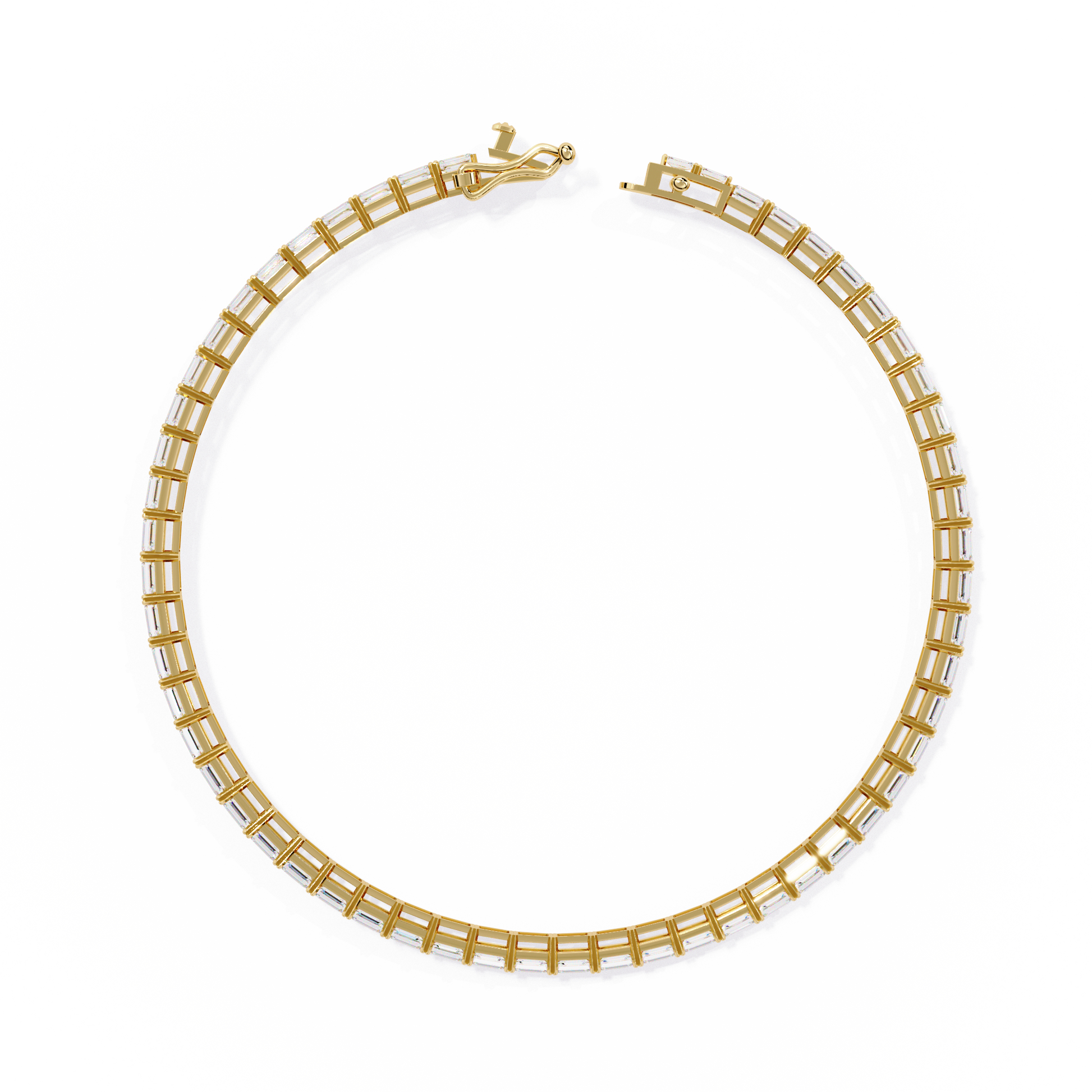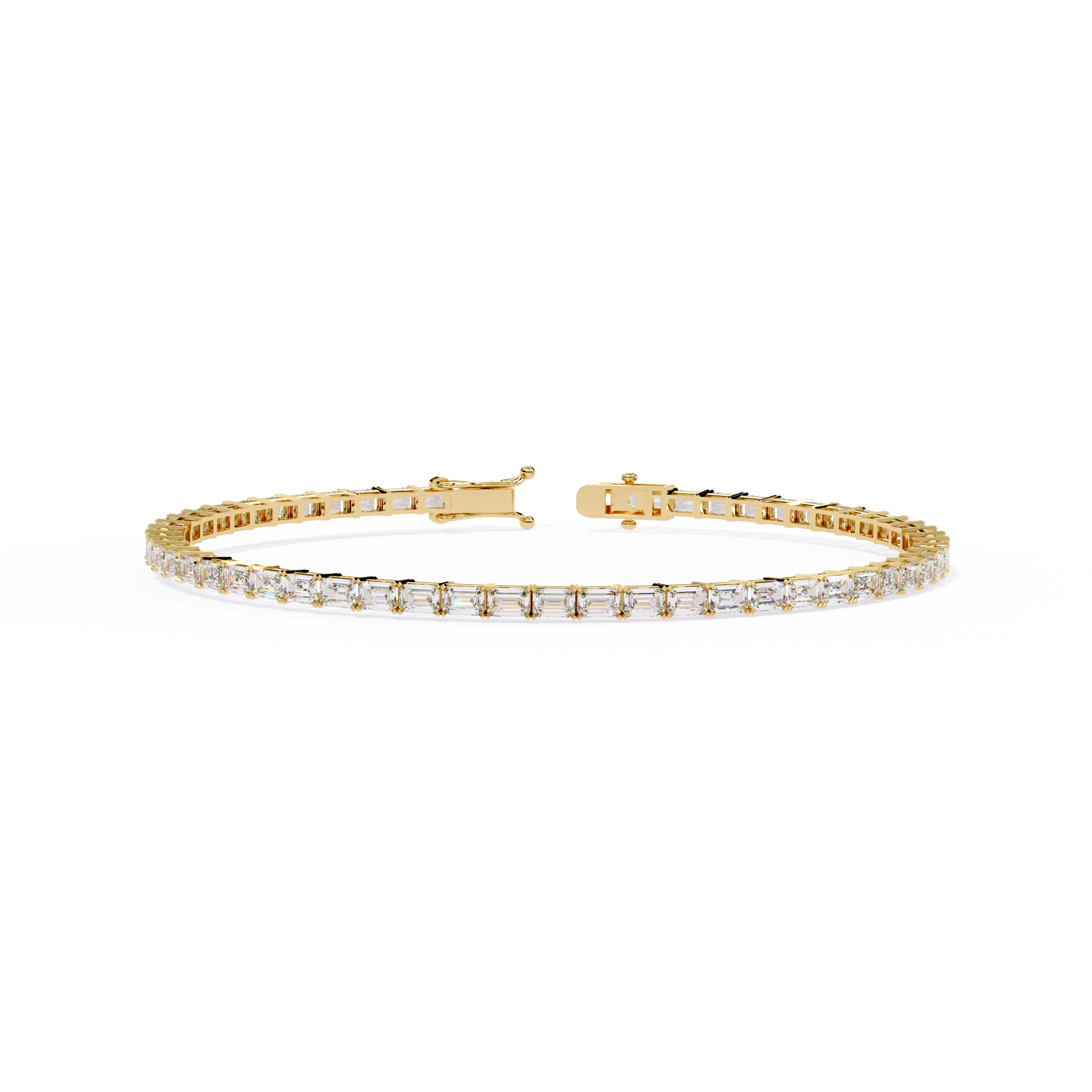The Petra bracelet is a stunning display of elegance and brilliance. Crafted with 56 Emerald shaped lab-grown diamonds, this exquisite piece offers a total diamond weight of 3.54 carat. Each diamond is carefully set to create a radiant and timeless design, perfect for any occasion. The lab-grown diamonds provide an eco-friendly and ethical alternative while maintaining the same beauty and sparkle as mined diamonds. A true treasure for your jewelry collection.
