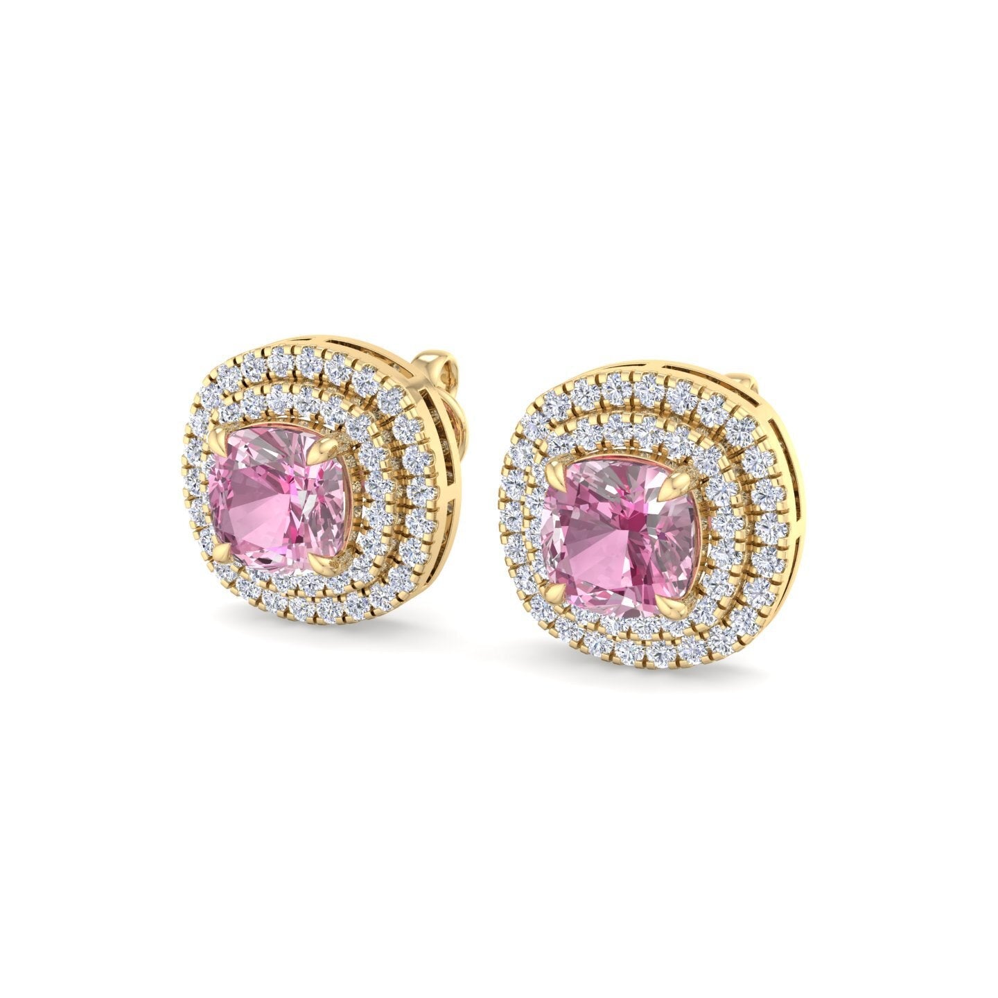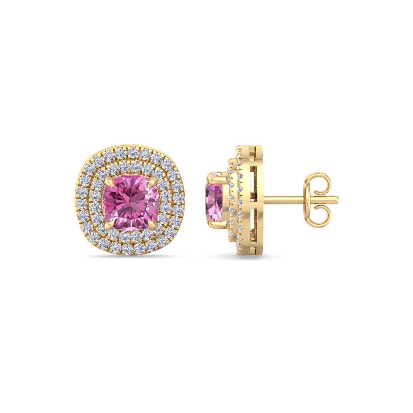 The rosy dusk 3.89 Carat Oval Lab-Grown Diamond Earrings feature a stunning cushion diamond at the center, surrounded by 92 round diamonds for a captivating and modern look. Available in various gold options, these contemporary earrings offer a luxurious sparkle and elegance. Perfect for adding a touch of sophistication to any ensemble, they combine timeless beauty with innovative design, making them an ideal accessory for any occasion.
