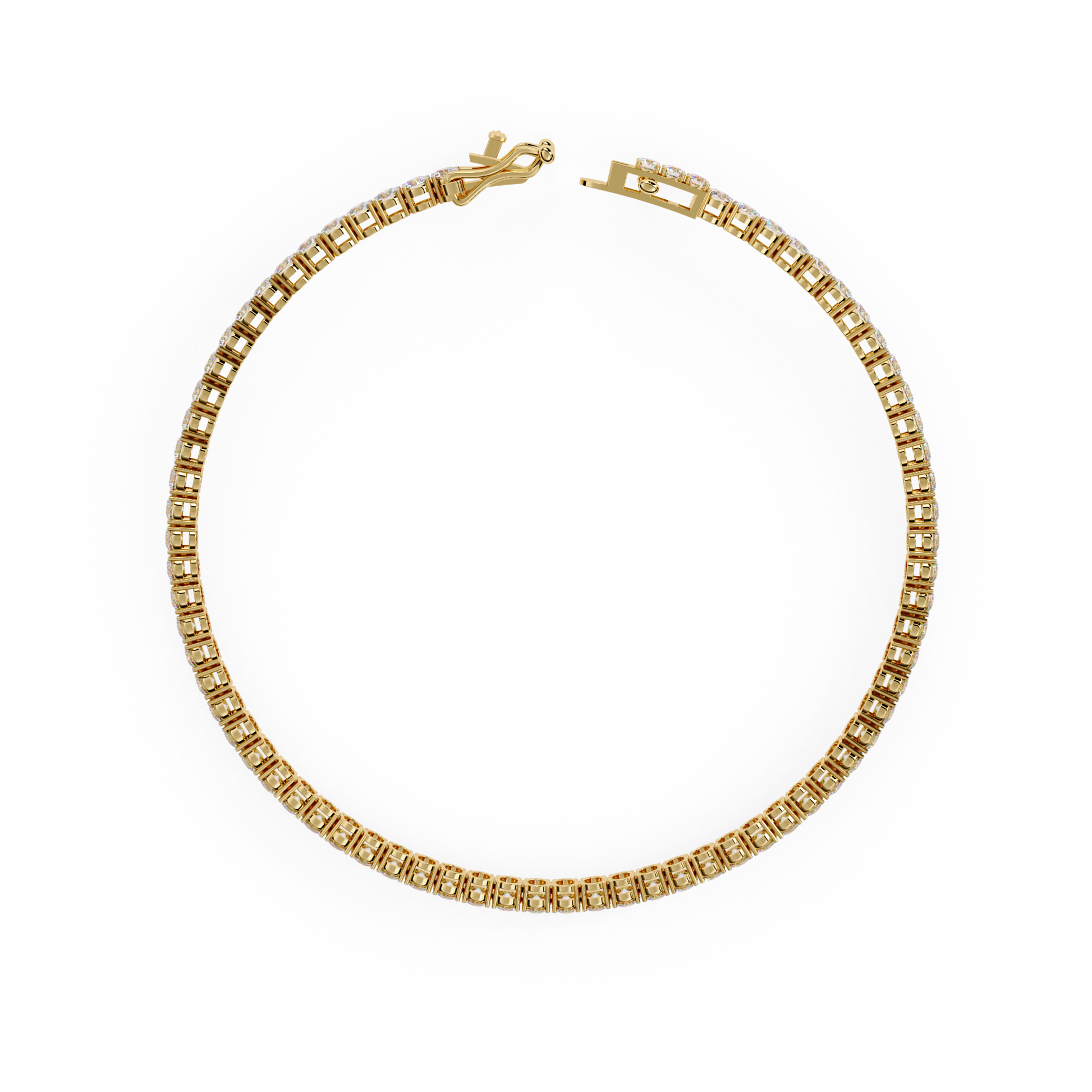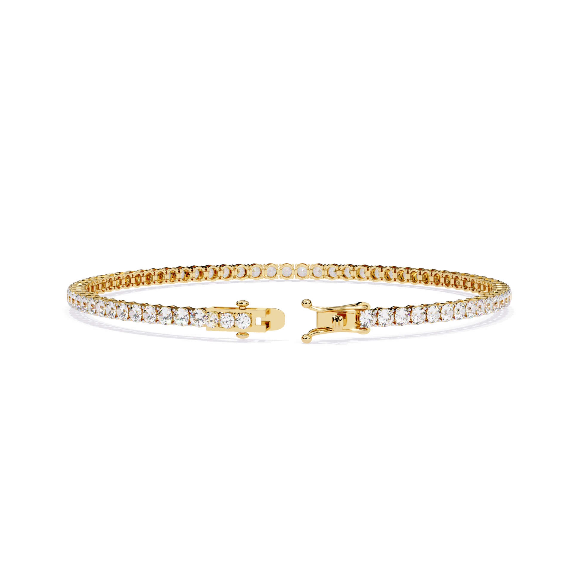 The Tajara bracelet is a stunning display of elegance and brilliance. Crafted with 70 round shaped lab-grown diamonds, this exquisite piece offers a total diamond weight of 3.89 carat. Each diamond is carefully set to create a radiant and timeless design, perfect for any occasion. The lab-grown diamonds provide an eco-friendly and ethical alternative while maintaining the same beauty and sparkle as mined diamonds. A true treasure for your jewelry collection.