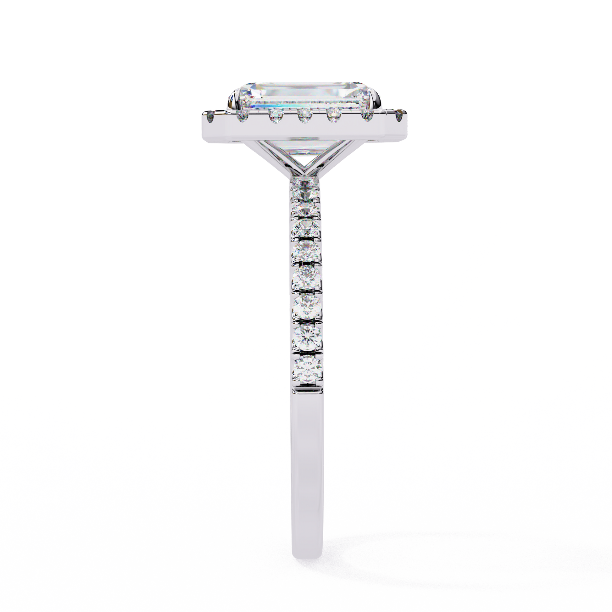 The Valentina ring features a stunning 1.84-carat Radiant-cut center stone, surrounded by a halo of shimmering diamonds. This breathtaking design is a true celebration of love and elegance, capturing hearts with its timeless beauty. Crafted to perfection, the Valentina ring exudes radiant charm and sophistication, making it the ideal symbol of enduring love and refined style. Its captivating sparkle ensures it will never go unnoticed.