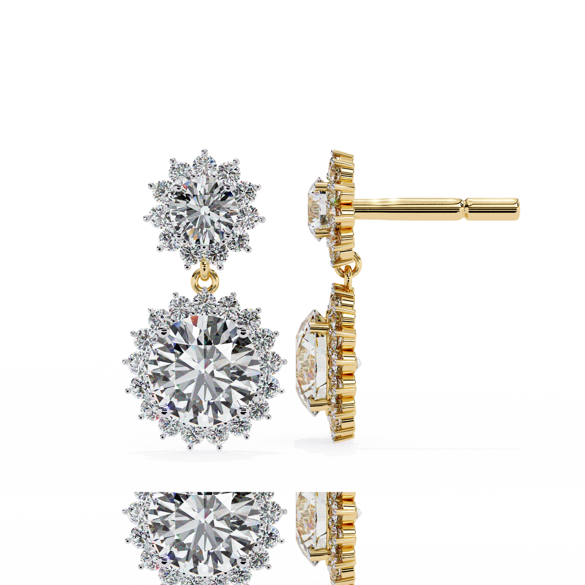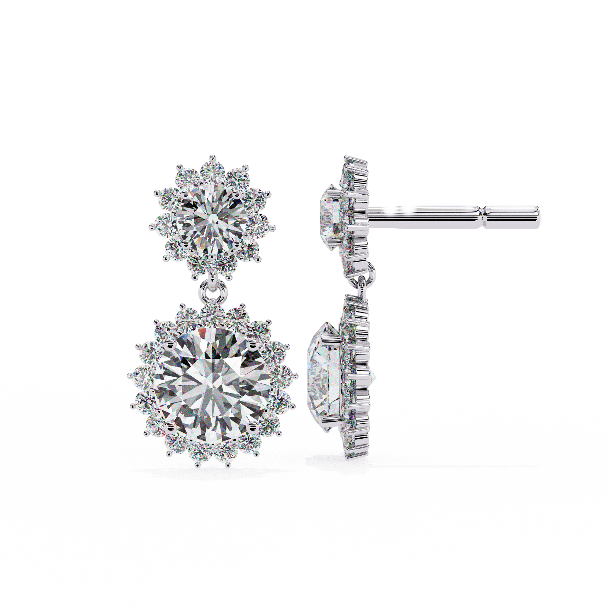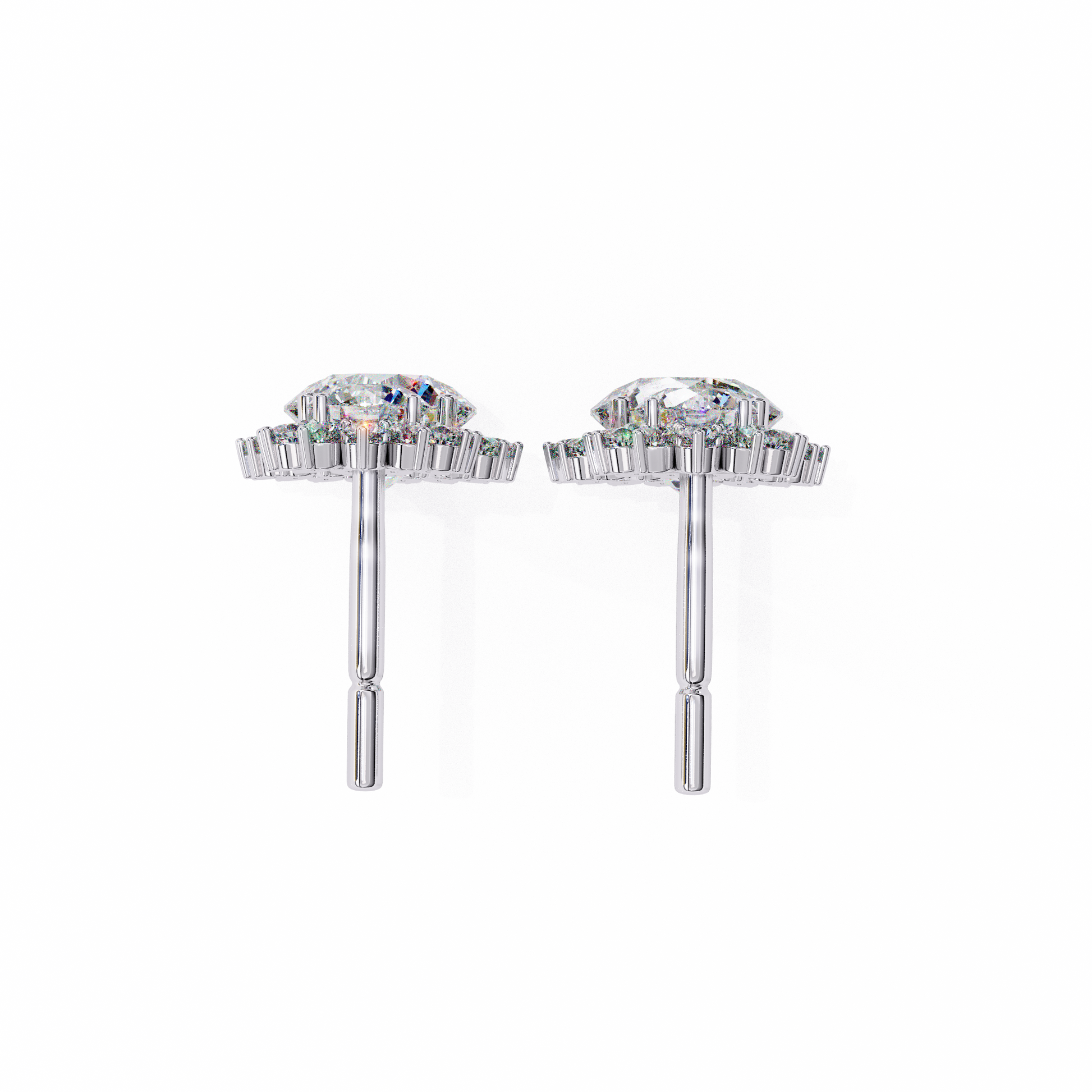 These exquisite round lab-grown diamond earrings offer captivating brilliance and refined elegance, making them the perfect finishing touch for any occasion. With their timeless design and dazzling sparkle, they elevate any outfit with sophistication and charm. Whether for a formal event or a special moment, these earrings provide a luxurious yet eco-friendly option, adding an effortless touch of grace and beauty to your style.
